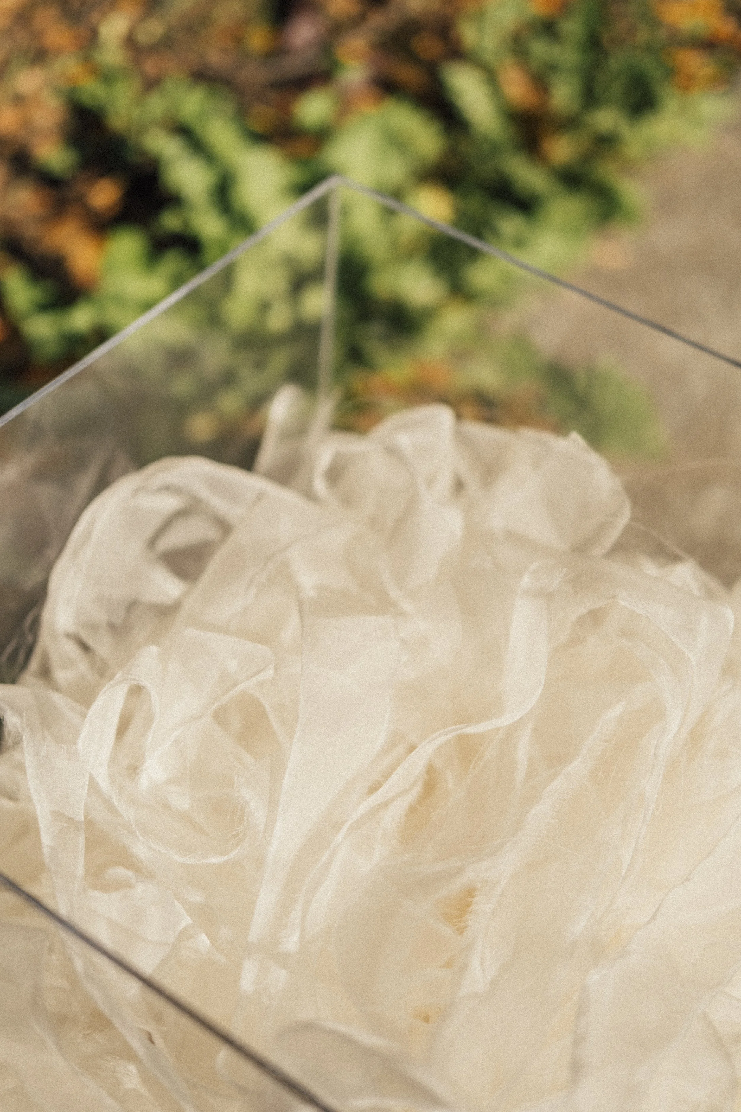 Onoto is Home (2023). Gifted tires, deadstock silk organza dyed with onto seeds. Variable dimensions: 60 tires, each ranging from 10"x10"x5" to 30"x30"x10"